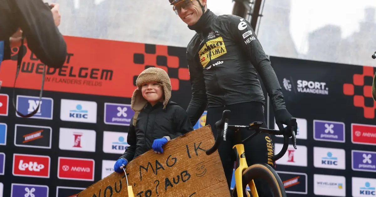 Ook hiervan circuleren beelden van op sociale media. Wout van Aert mocht al meteen handtekeningen uitdelen, bij fans die met een regenboogtruitje of dergelijke opdaagden. Ook het nemen van een selfie stond duidelijk hoog op hun verlanglijstje.