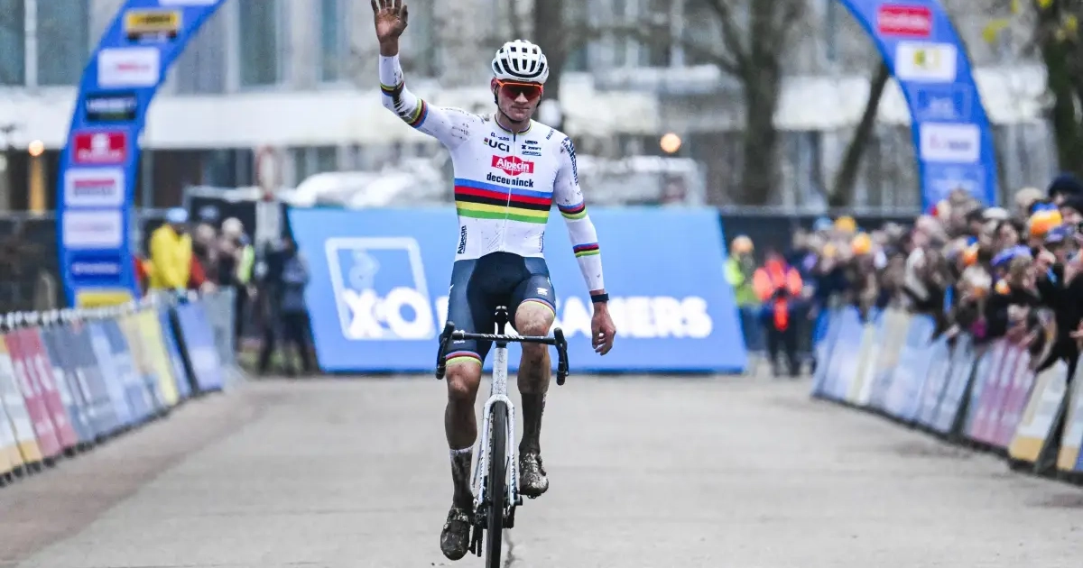 Daarna pakte MVDP makkelijk meer dan een halve minuut voorsprong, op het einde ging hij zelfs een beetje inhouden - het was dan ook niet nodig. "Van der Poel is de verbrodder van het jaar. Ik denk dat hij minder afziet dan iemand helemaal achteraan. Het is heel simpel, er is geen discussie over, het zijn de werken van de meester", wilde Paul Herygers de lof niet schuwen bij Sporza.