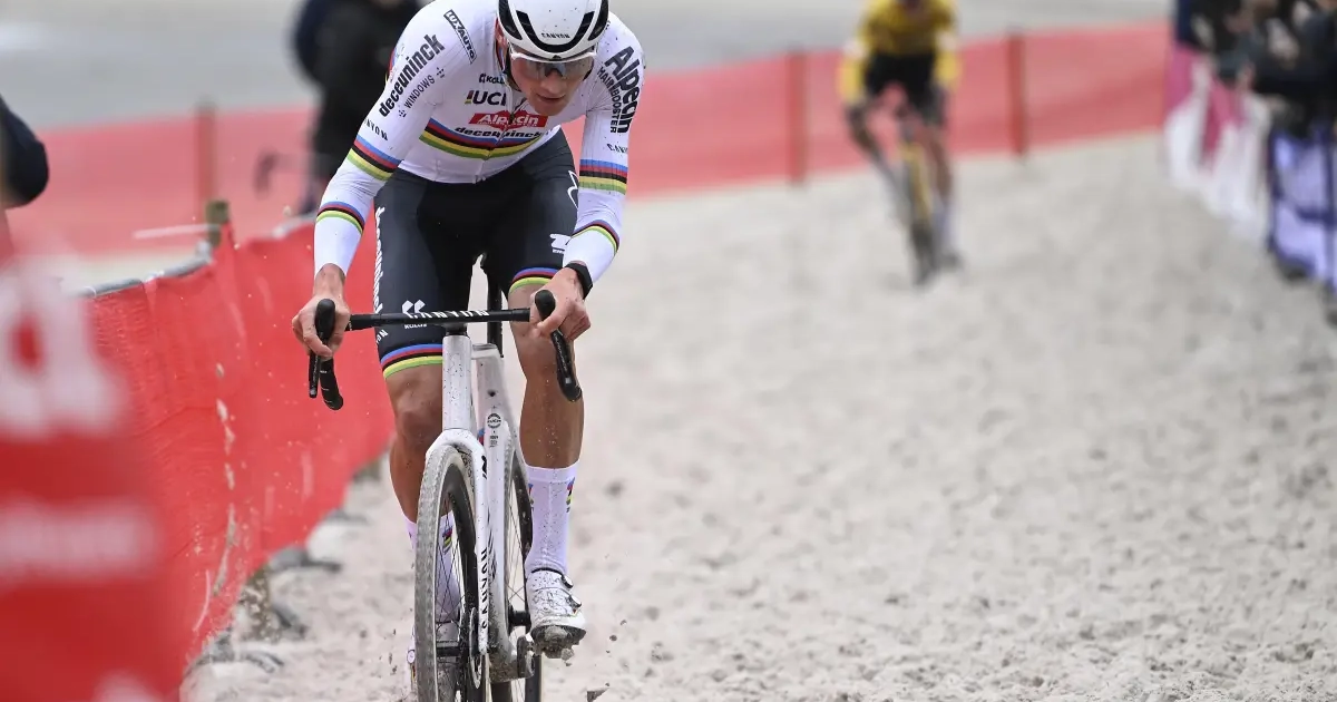 Van Aert maakte wat foutjes en moest Van der Poel laten rijden. De wereldkampioen sloeg een gat en reed alsmaar verder weg. Van der Poel breidde zijn voorsprong uit naar meer dan minuut op Van Aert.