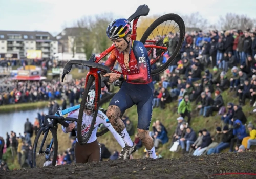 Maar het liep dus al meteen fout voor Pidcock. De Brit ging onderuit bij het induiken van het veld en had daarna problemen om zijn ketting er opnieuw op te leggen. Tot overmaat van ramp brak hij ook nog zijn derailleur af.