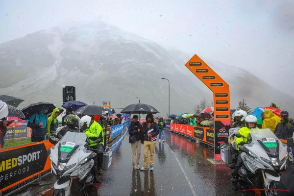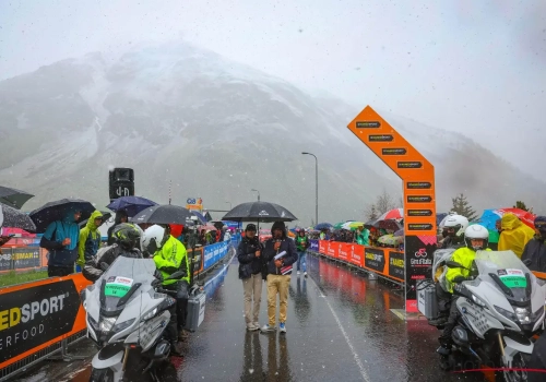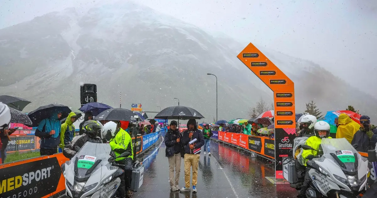 Op de omstreden Umbrailpas was het ook bitter koud en was vooral de afdaling van op 2.500 meter gevaarlijk. De organisatie kwam uiteindelijk met een nieuwe etappe aan, met vertrek om 14 uur. Absolute chaos in de Giro dus vanmorgen.