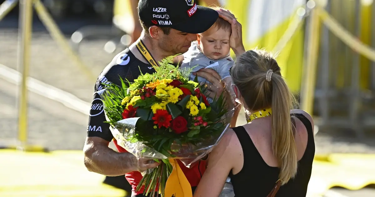 Het is tot dusver een moeizame Tour de France voor Wout van Aert. Zijn vrouw Sarah volgt de Tour de laatste dagen met de kinderen, aan steun van de familie dus geen gebrek.