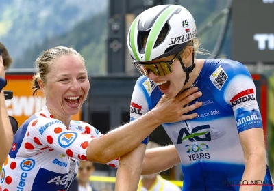 Justine Ghekiere pakte op knappe wijze de ritzege en begon vervolgens meteen ook de ploeg te danken. Zeker Julie Van De Velde verdiende daarbij een geweldige extra pluim voor haar werk richting Le Grand Bornand.