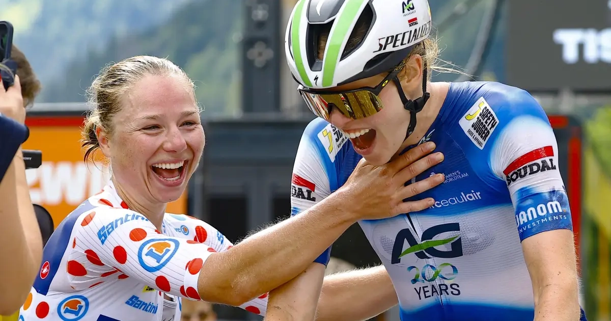 Justine Ghekiere pakte op knappe wijze de ritzege en begon vervolgens meteen ook de ploeg te danken. Zeker Julie Van De Velde verdiende daarbij een geweldige extra pluim voor haar werk richting Le Grand Bornand.