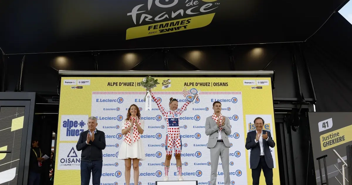 Ze moest niet eens wachten tot aan de finishlijn van de Tour. Onderweg in de slotetappe was Justine Ghekiere al zeker van de eindwinst in het bergklassement.