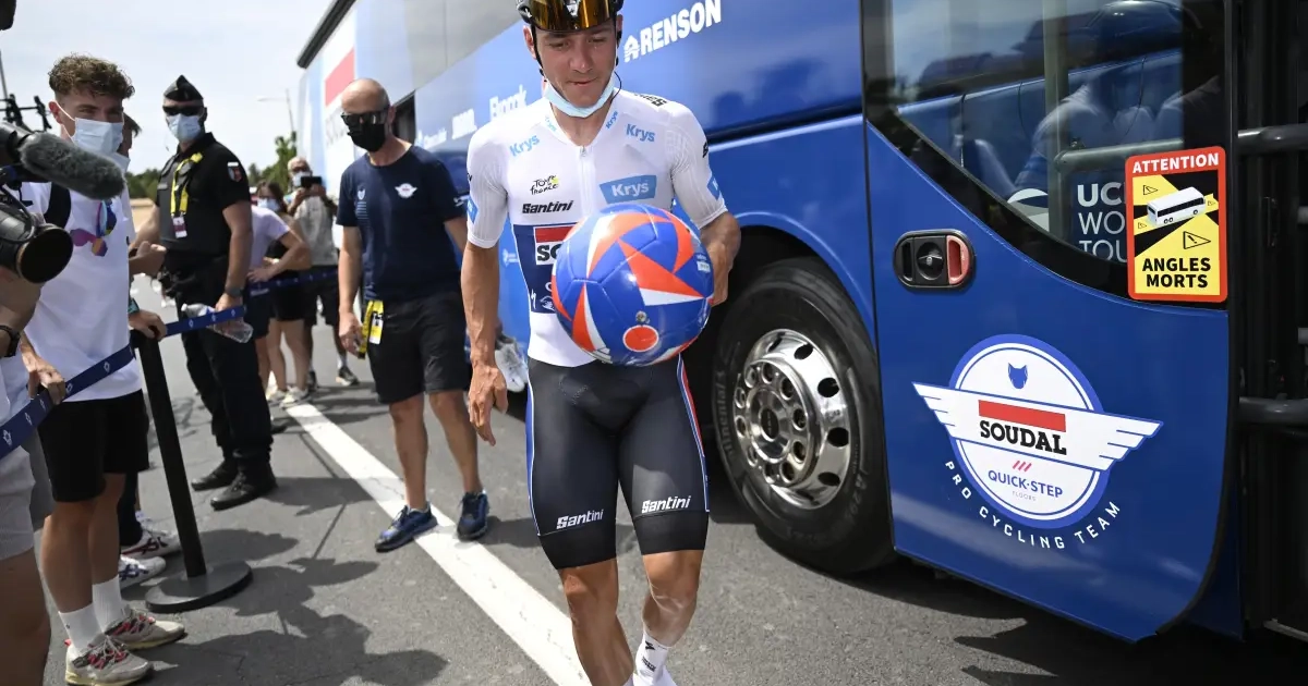Hoewel hij momenteel indruk maakt in het profwielrennen, is de liefde voor voetbal bij Remco Evenepoel nog steeds aanwezig. Dat zien we niet enkel aan de jongleerkunsten die hij voorafgaand aan een rit wel eens bovenhaalt. Het is ook te merken aan zijn bezoeken aan voetbalstadions of de truitjes die hij weet te bemachtigen.