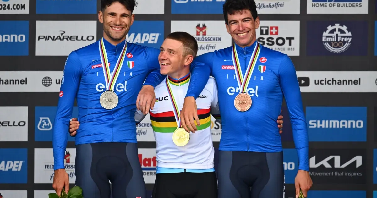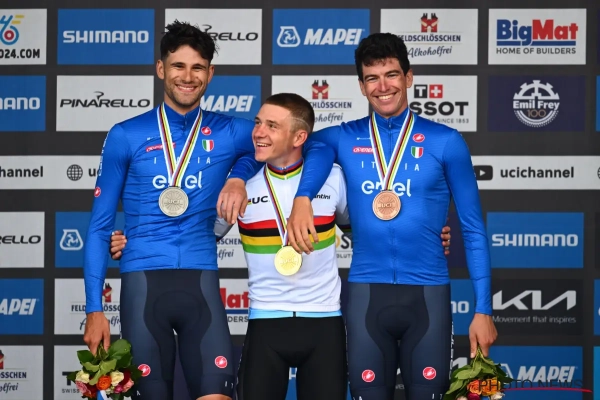 Remco Evenepoel is opnieuw wereldkampioen tijdrijden. Onze landgenoot stond met twee Italiaanse bomen van venten op het podium.