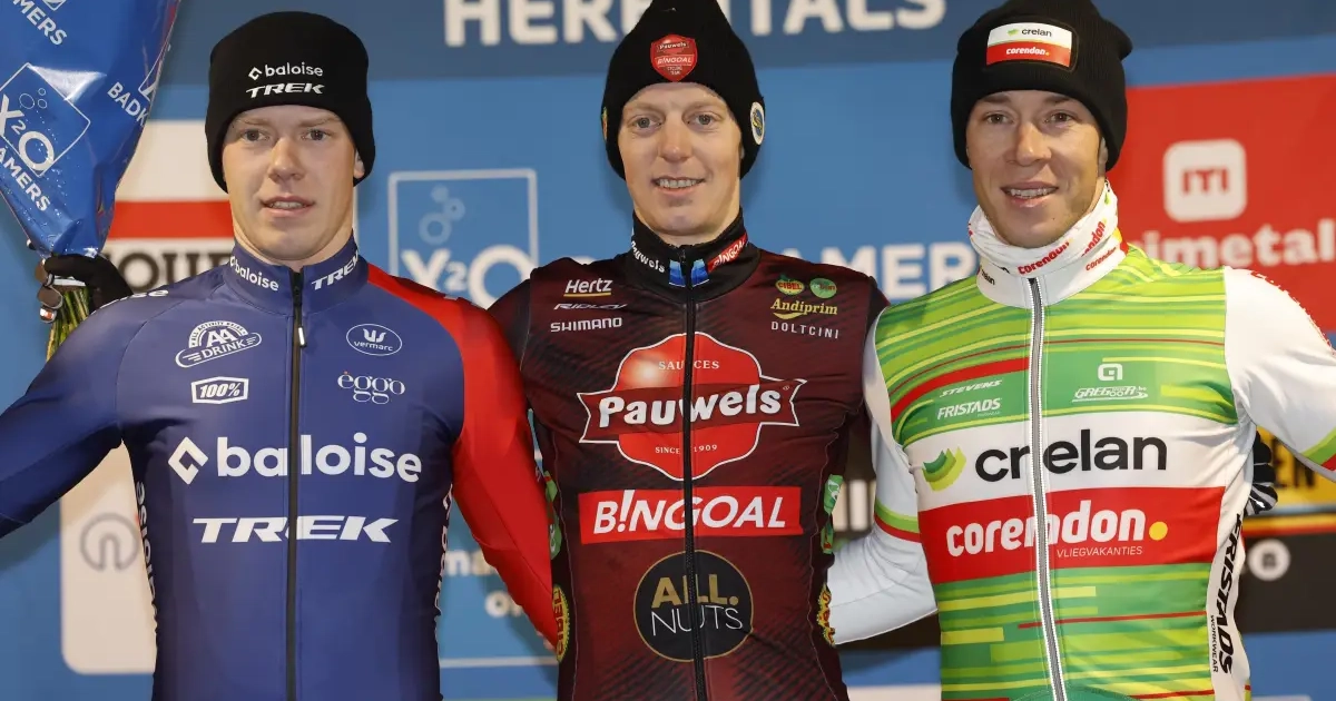 De winnaarsmentaliteit spatte er vanaf op de cross in Herentals. Bij Michael Vanthourenhout, de enige echte winnaar, maar ook bij de andere mannen op het podium. Dat waren Pim Ronhaar en Laurens Sweeck.