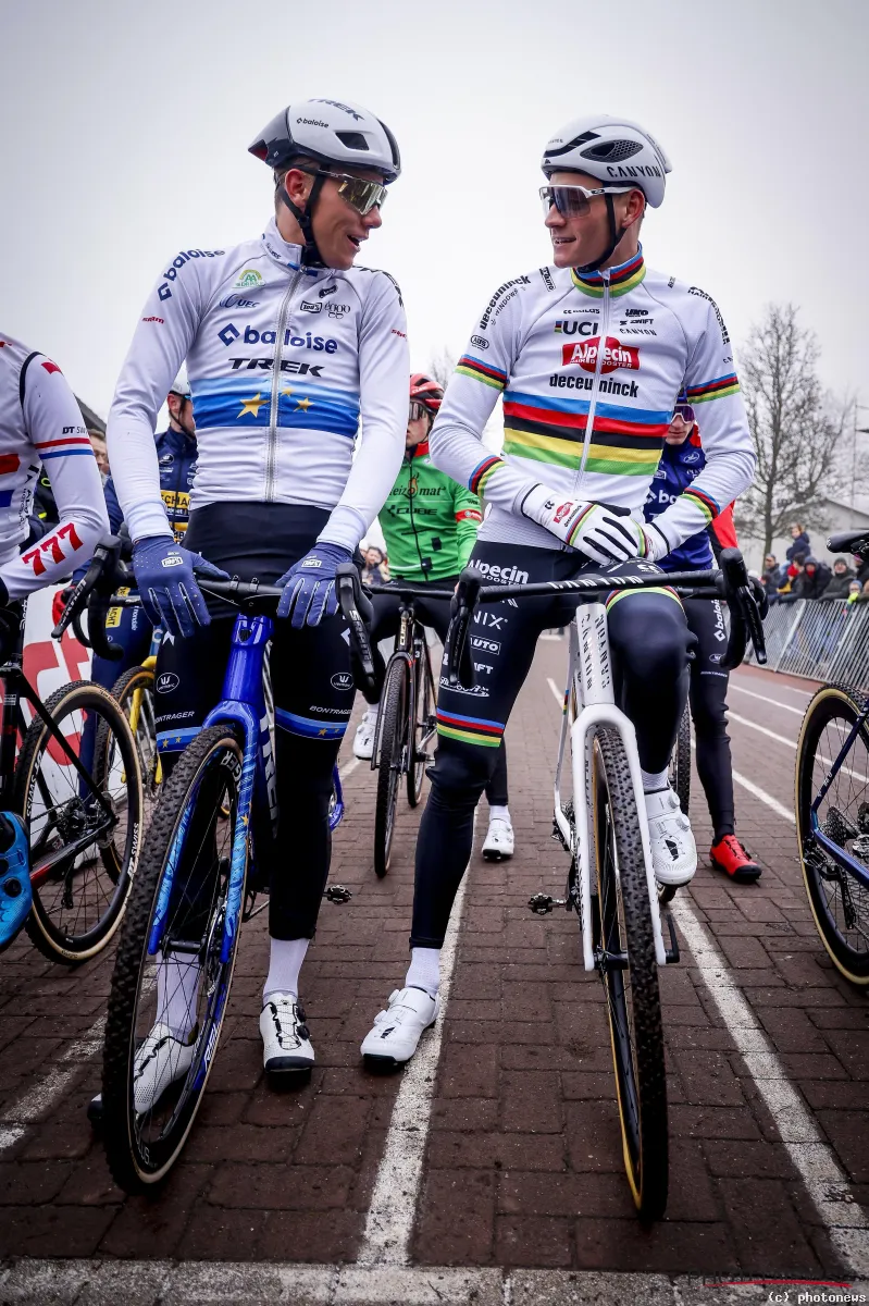 De Europese en Belgische kampioen werd gevolgd in Loenhout, Baal en op het BK. En aan de start in Loenhout was er al meteen een leuk onderonsje tussen Thibau Nys en wereldkampioen Mathieu van der Poel.