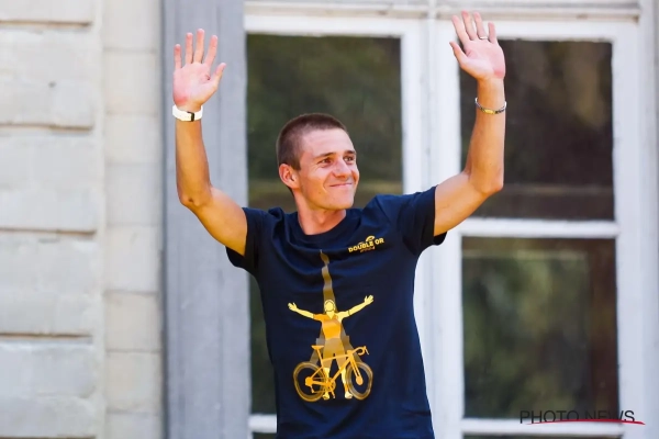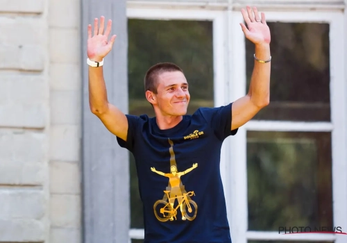 Naast zijn t-shirt kreeg hij ook een echte gouden fiets, maar die brak hij in stukken door tegen de portier van een Bpost-busje aan te knallen op training.