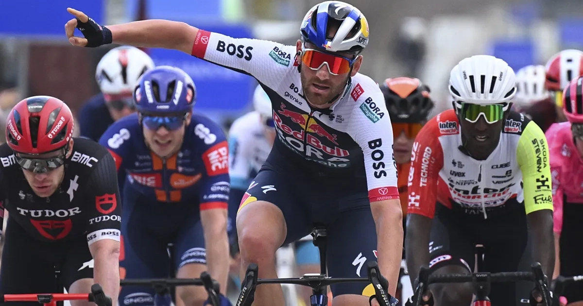 Jordi Meeus heeft de derde etappe in de Ronde van de Algarve gewonnen. De Belg van Red Bull-BORA-hansgrohe klopte onder meer Arnaud De Lie en Wout van Aert.