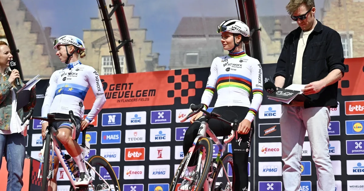 Toen Wiebes weer kwam aansluiten, was er ook even overleg tussen de Europese kampioene en de wereldkampioene. "Op zich verliep de communicatie met Lorena goed", wilde Kopecky er niet te veel over kwijt bij Het Nieuwsblad.