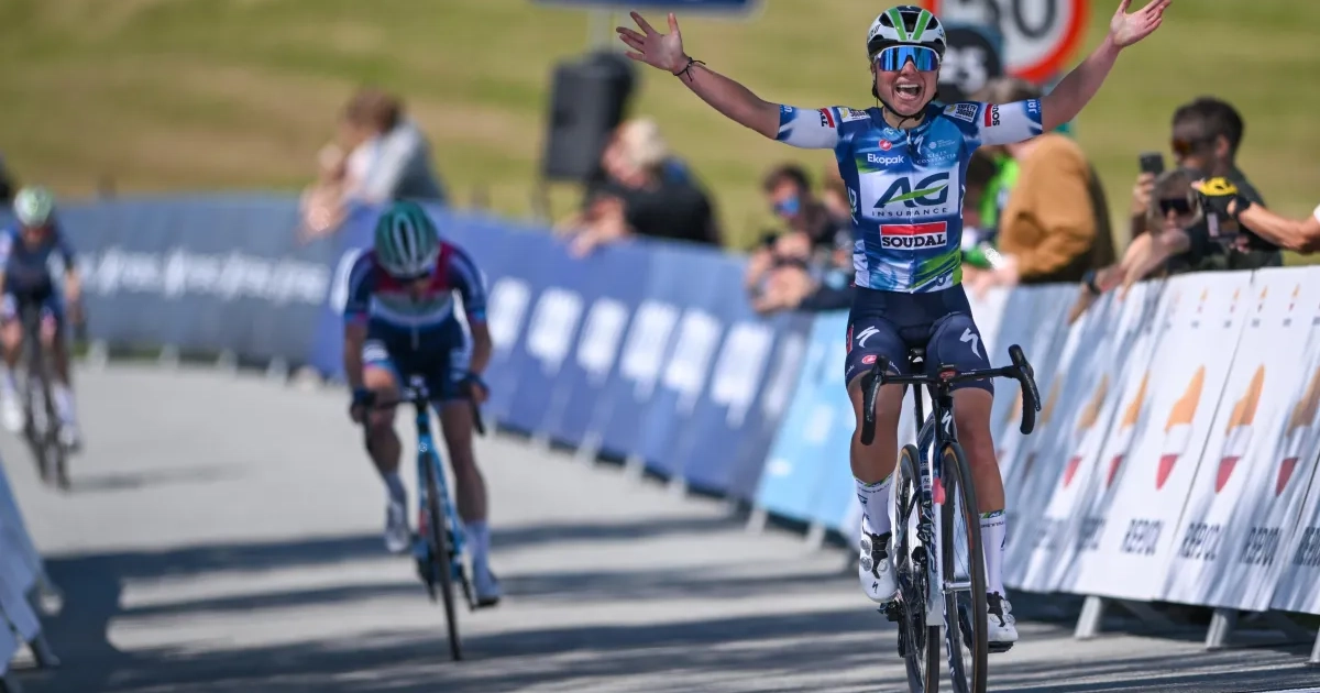 Justine Ghekiere heeft de openingsrit van de Ronde van Noorwegen gewonnen. Voor de Belgische is het haar eerste zege sinds haar etappezege in de Tour vorig jaar.