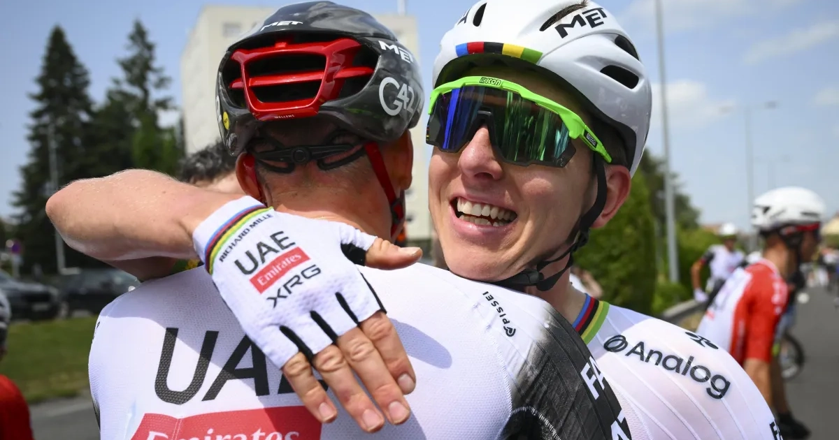 Ook Tadej Pogacar, die uiteindelijk de etappe won, was verrast. “Maar ik was wel happy met zijn aanval”, zei de Sloveen. “Blij dat hij anders begint te koersen en een beetje enthousiasme toont. Het is een teken dat hij in vorm is en fun wil hebben op de fiets.”