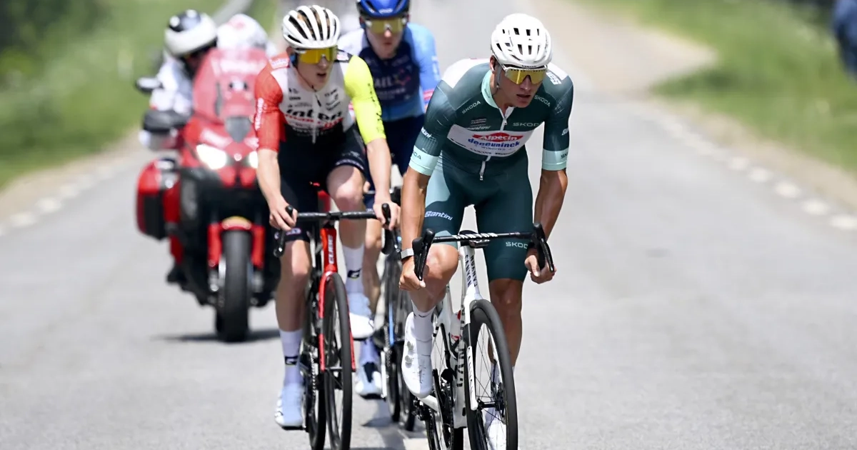 Door de aard van het parcours is Mathieu van der Poel één van de kandidaten om de gele trui te pakken na afloop van de derde etappe in de Dauphiné. Dat vertelde ook Remco Evenepoel. Hij dacht dan eerder dat er op dat klimmetje op twintig kilometer van de aankomst wel een aanval kon komen. Zo lang heeft Van der Poel niet gewacht.