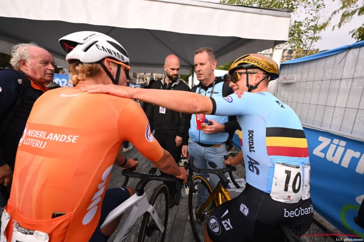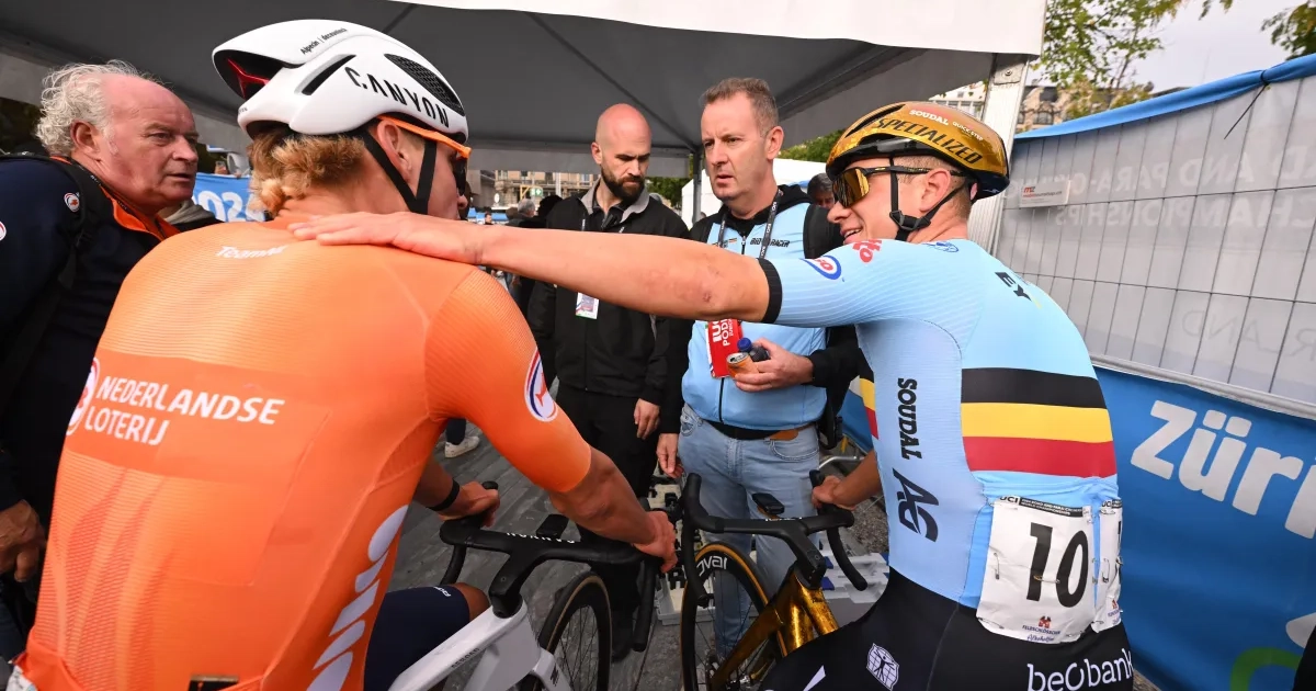 Dat hij zo dicht in de buurt kwam, zegt ook veel over de knappe tijdritprestatie van Van der Poel. Dat vond Evenepoel ook. "Sterk, hé", zei Evenepoel aan de Nederlander, wat hij uiteraard wel ernstig meende. Zeker aangezien Evenepoel zo zwaar uitpakte. Van der Poel is aan een reeks met allemaal ereplaatsen of overwinningen bezig.