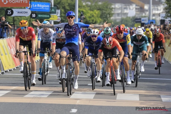 Zo won Jake Stewart donderdag in de Dauphiné en wist hij topfavoriet Jonathan Milan van de overwinning te houden. De snelle man van Israel-Premier Tech wees na afloop richting zijn voorvork.
