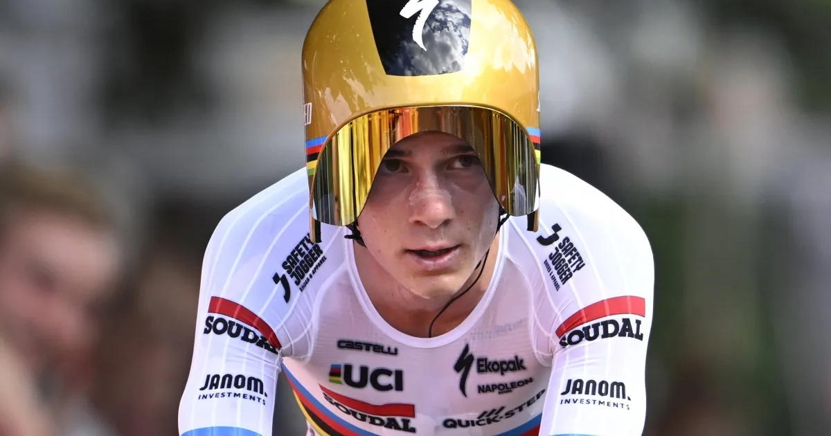 Net als in de Dauphiné was Remco Evenepoel opnieuw veel te sterk voor de concurrentie op het BK tijdrijden. Hij gebruikte daarvoor telkens een opvallend vizier aan zijn tijdrithelm.