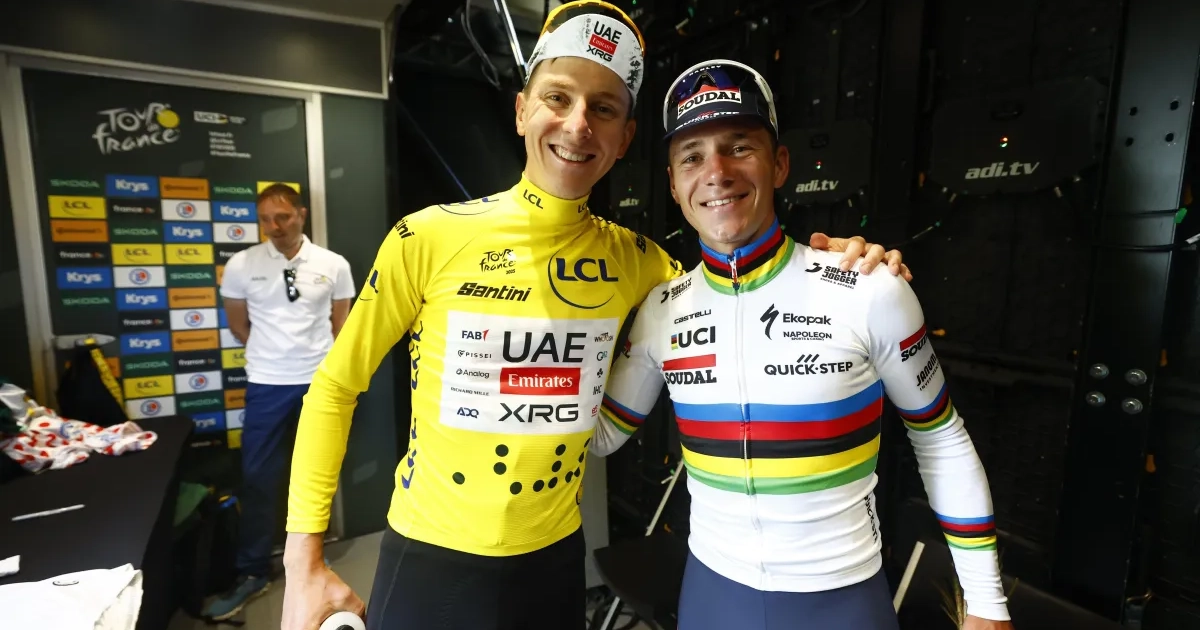 Remco Evenepoel heeft veel lof voor Tadej Pogacar, die ook heel sterk voor de dag kwam en het geel heeft na de tijdrit. Evenepoel geeft toe dat hij na de eerste Tourrit teleurgesteld in zichzelf is geweest. Die teleurstelling is nu helemaal weggespoeld.