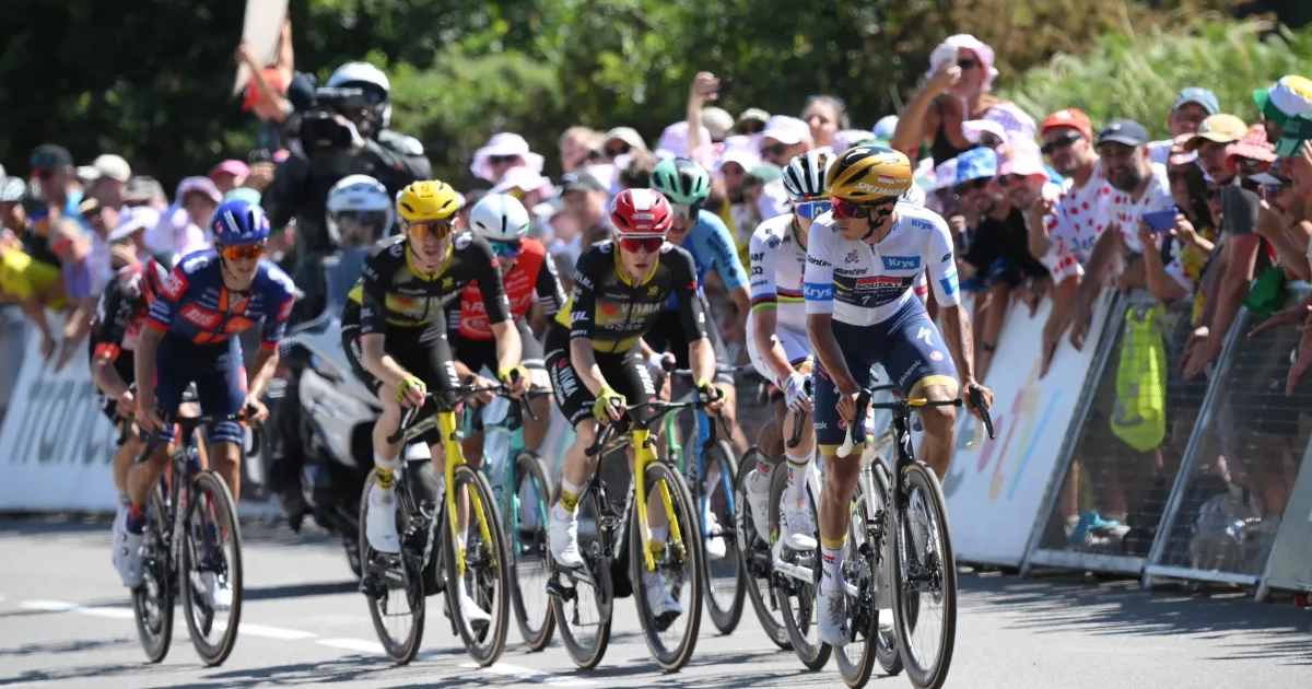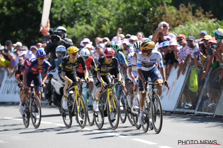 Op de tweede en laatste beklimming van Mûr-de-Bretagne maakte Remco Evenepoel mee koers met Tadej Pogacar en Jonas Vingegaard. De olympische kampioen ging zelfs naar de kop en nam over van Pogacar.
