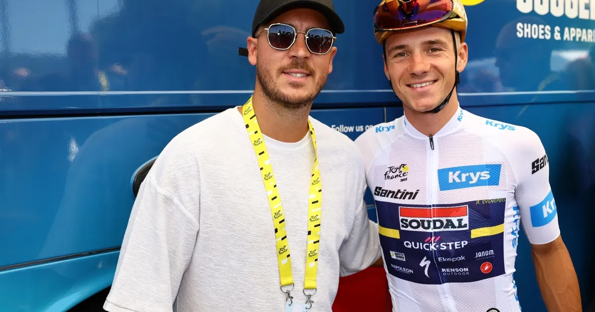 Jan Vertonghen bracht Remco Evenepoel twee jaar geleden al een bezoekje in de Giro, nu kwam Eden Hazard langs in de Tour. Voor de voormalige kapitein van de Rode Duivels was het de eerste ontmoeting met Evenepoel.