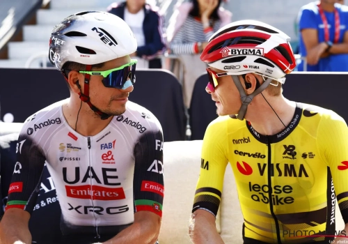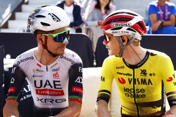 Tussen hen beiden vinden we in de rituitslag Tom Pidcock. In de achtervolging op Vingegaard werkte die wel deels mee, maar Almeida vond het onvoldoende. Op een gegeven moment sprak Almeida tijdens de koers Pidcock boos toe. "Toon eens ballen, zei hij me", onthult Pidcock in een flashinterview. "Ik zei: als je wat trager rijdt, kan ik meedraaien."