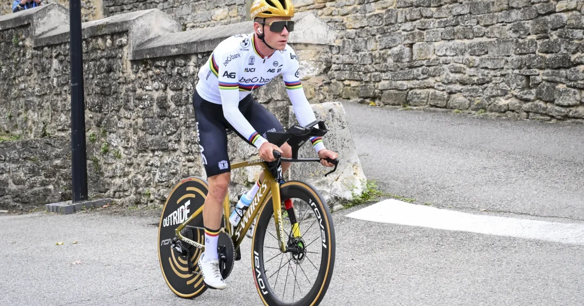 Op het WK tijdrijden in Rwanda pakte Remco Evenepoel voor de derde keer op rij de wereldtitel tegen de klok. Zijn Belgische driekleur zal Evenepoel dus niet kunnen dragen in het tijdrijden, de regenboogtrui heeft voorrang.