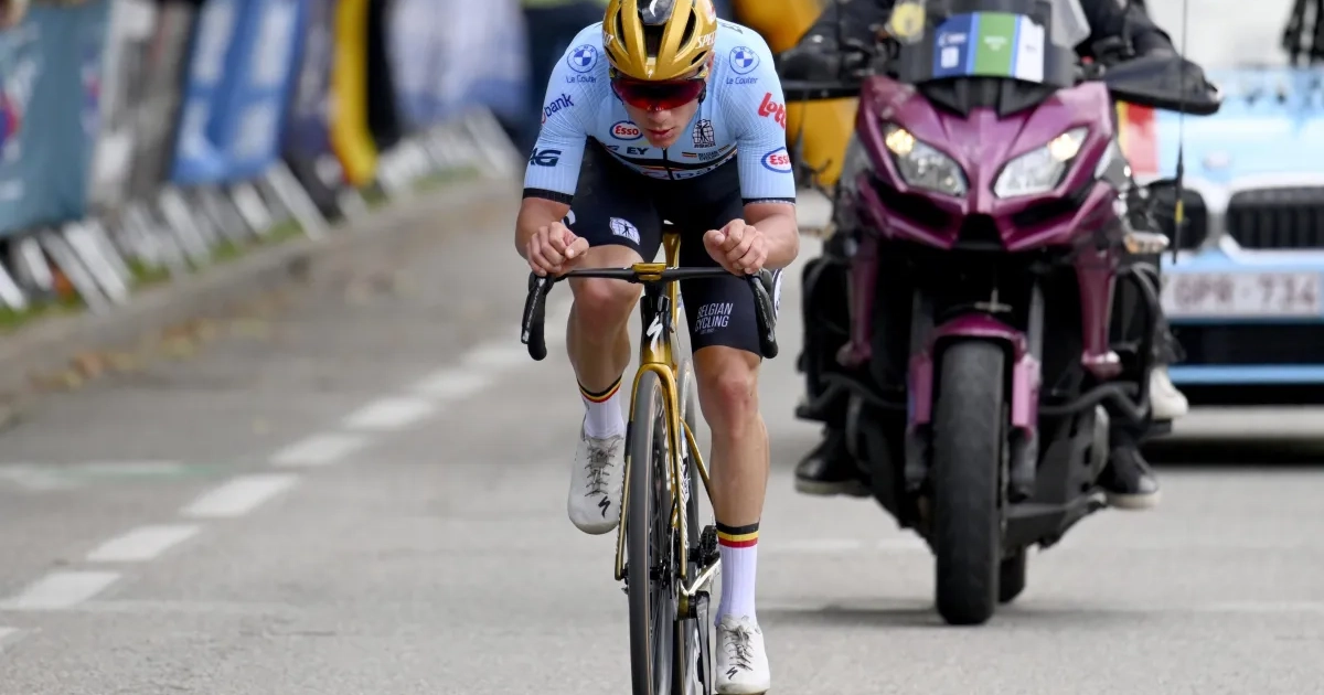 Een Almeida was daar zeker niet meer bij. Daarna ontspinde zich het gevreesde scenario: Pogacar loste met een vroege aanval alles en iedereen. Evenepoel klampte nog wel even aan, maar moest net als op het WK in tweede instantie passen. Evenepoel, Scaroni, Seixas en Ayuso hielden in de achtervolging de moed er nog wel in.