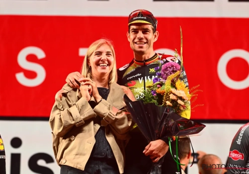 Lees ook... Vanthourenhout houdt zich niet in over terugkeer Van der Poel en Van Aert ›Dit jaar heeft hij ook voor het eerst een etappe gewonnen in de Ronde van Italië. Dat deed hij op het parcours van de Strade Bianche. Omdat het zo lang geleden was dat hij had gewonnen, betekende die zege veel voor Van Aert en zijn vrouw.