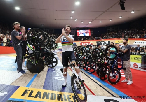 "Ik heb echt kippenvel. Dit is het perfecte einde", vertelde de Italiaan die ook een eerbetoon kreeg van onder meer Filippo Ganna - sinds zaterdag in Gent aanwezig.