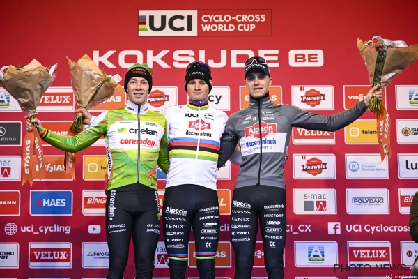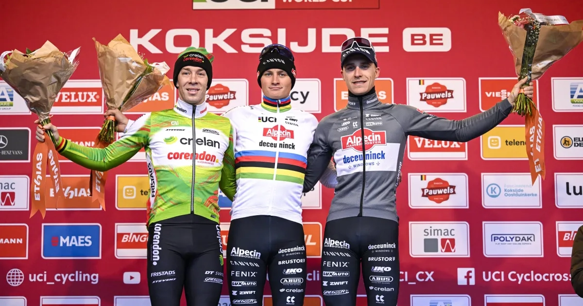 Niels Vandeputte heeft bij de profs zijn beste uitslag tot dusver beet in Koksijde. "In de Wereldbeker voor beloften won ik hier. Het is fijn om nu ook bij de elite op het podium te staan, naast Mathieu van der Poel en Laurens Sweeck. Dat is geen verkeerd podium", beseft Vandeputte ook dat dit een mooie foto oplevert met hem erbij.