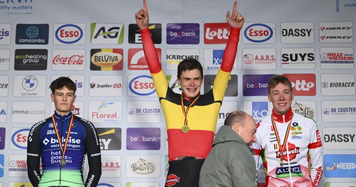 Het is inmiddels vijf dagen geleden dat Vandenberghe Belgisch beloftenkampioen geworden is. Dat speelde hij klaar in Beringen nadat hij samen met ploegmaats Kay De Bruyckere en Sil De Brauwere het mooie weer had gemaakt tijdens de cross. Het deed ploegmanager Jurgen Mettepenningen blinken van trots tijdens de tv-uitzending.
