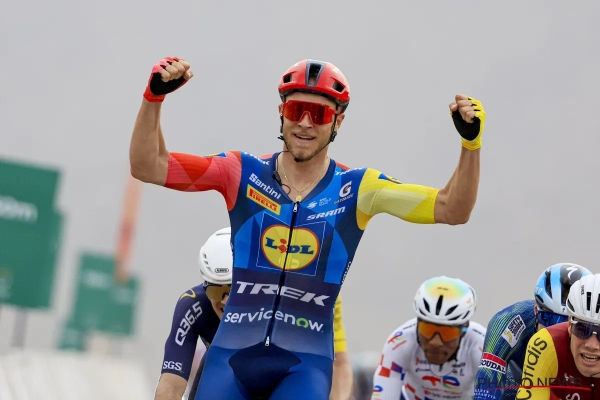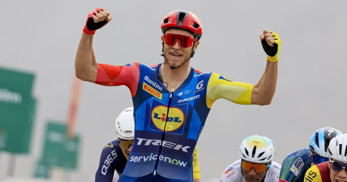 Het peloton moet in het midden-oosten vaak beuken tegen de wind en dat was in de openingsrit (158 km) niet anders. Lidl-Trek trok de boel in waaiers en zette alles op de sprint en Jonathan Milan.