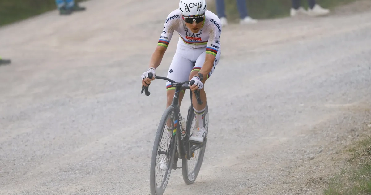 Tadej Pogacar heeft getoond dat hij klaar is voor 2026. Met een solo van meer dan 70 kilometer won hij de Strade Bianche.