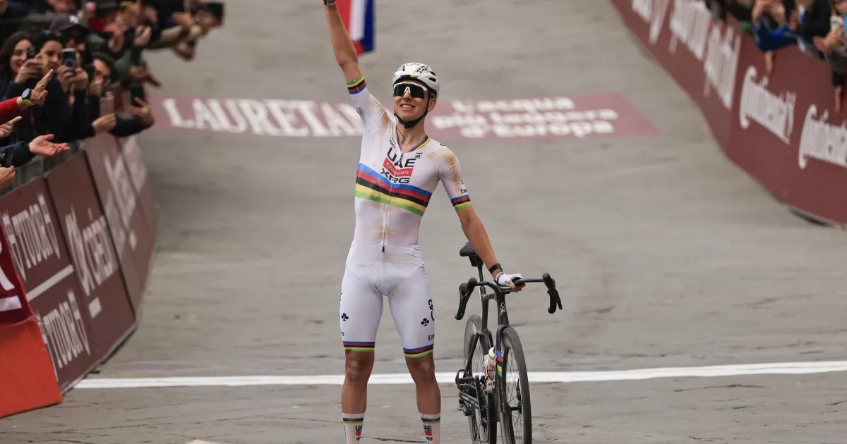 Er stond opnieuw geen maat op Tadej Pogacar in de Strade Bianche. Net als in 2024 pakte de Sloveen uit met een solo van zo'n 80 kilometer en pakte hij een historische vierde overwinning in de 20ste editie.