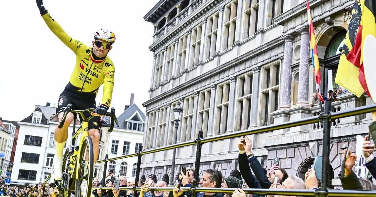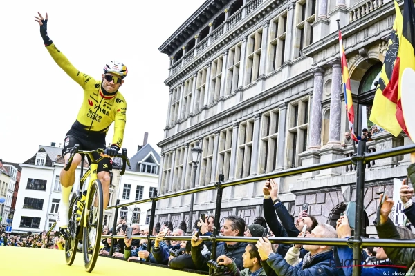Wanneer Wout van Aert zich richting podium begaf voor de ploegenpresentatie, gingen de smartphones nog iets gretiger de lucht in. Aan duidelijke meningen bij Van Aert geen gebrek.