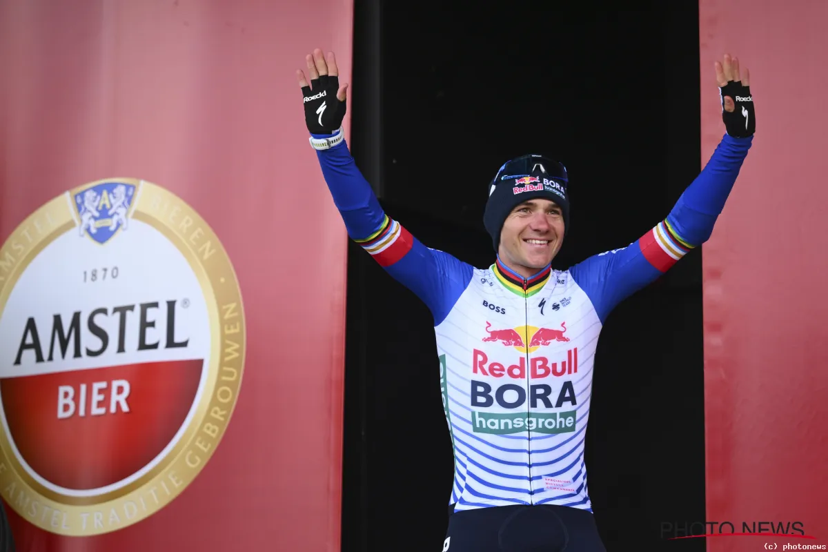 Met zijn zege in de Amstel Gold Race stond Remco Evenepoel al voor de tiende keer op het podium in 2026. Bij zijn nieuwe ploeg Red Bull-BORA-hansgrohe hoort daar echter ook een opvallend accessoire bij.